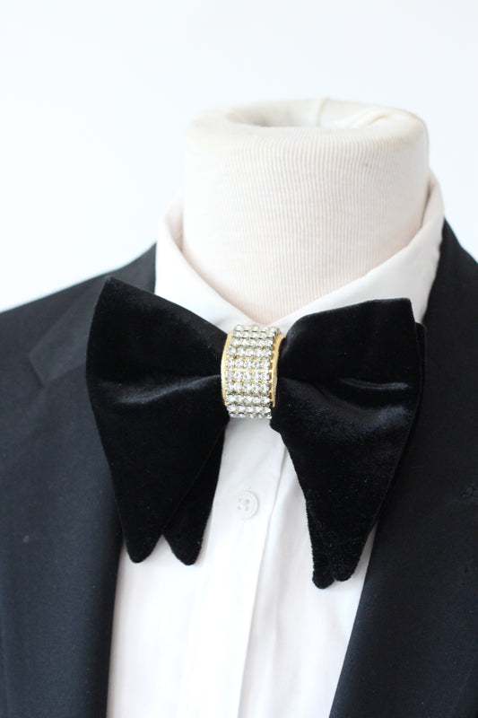 Schwarze herren fliege aus Samt mit Strasssteinen