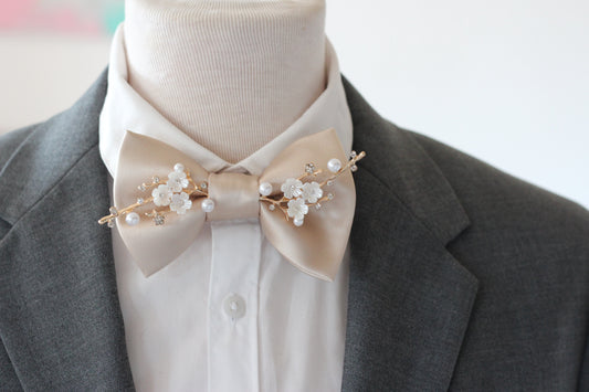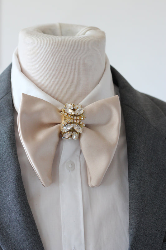 Beige Herren satin Fliege mit Strasssteine